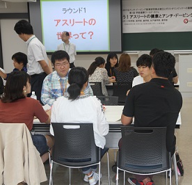 薬学部が主催する「5学部連携ワールドカフェ」が9月28日、三軒茶屋キャンパスで開催された。スポーツ科学、医、歯、松戸歯、薬学部の1、2年生31人が参加。「みんなで考えよう!アスリートの健康とアンチ・ドーピング」と題して、スポーツ界に潜在するドーピング問題について理解を深めた。