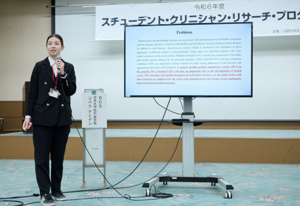 日本歯科医師会主催のスチューデント・クリニシャン・リサーチ・プログラム(SCRP)日本代表選抜大会が、8月6日に東京都千代田区の歯科医師会館で開かれ、本学のジベク・アイデンさん(松戸歯2)が優勝した。その結果、来年の3月に米・ニューヨークで開催される国際歯科研究学会米国部会(AADOCR)主催の学術大会へ、日本代表として出場することが決まった。