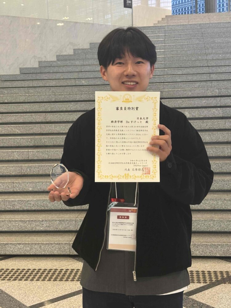 筑波技術大学と日本聴覚障害学生高等教育支援ネットワーク(PEPNet―Japan)は昨年12月7、8日に「日本聴覚障害学生高等教育支援シンポジウム」を茨城県のつくば国際会議場で開催した。同日に行われた「聴覚障害学生支援に関する実践事例コンテスト2024」では、本学経済学部の学生ボランティアサークル「Beすけっと」が審査員特別賞を受賞した。