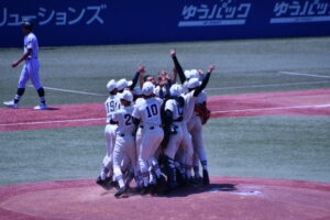 日大三高は同31日に行われた西東京大会決勝で東海大菅生高と対戦。6―2で勝利し4年ぶり18度目の出場を決めた。試合は1回裏に東海大菅生高に先制を許すと4回裏にも1点を失い、2点を追う展開。しかし、6回表に一死二、三塁のチャンスを作ると川崎広翔(3)の適時打で同点に追いつき、さらに松藤孝介(3)がスクイズを決め、逆転に成功。相手の守備の乱れも重なり、4―2とした。7回表には村上太一(3)の2点本塁打で6―2と点差を広げ、勝負を決めた。