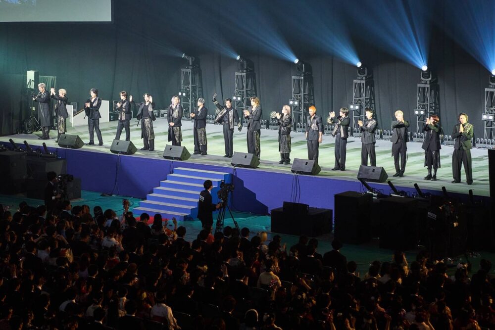 会場が暗転した後、モニターにTHE RAMPAGEのロゴが映し出されると会場から卒業生の歓声が沸き起こった。「継承」がテーマの『24karats GOLD GENESIS』のイントロからスタート。『16BOOSTERZ』、『Endless Happy―Ending』など5曲を連続して歌い上げた。