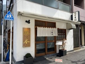 東京メトロ神保町駅A5出口を出て、白山通りに沿って東に歩くこと約4分。白壁に木の引き戸、白地に黒い文字で「つけそば 神田勝本」と書かれたシンプルなのれんの店が見えてくる。