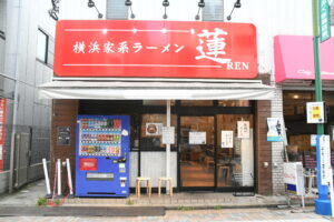 京成大久保駅北口から徒歩6分。飲食店が並ぶ「ゆうロード」を真っすぐ進むと左手に見えてくるのが「横浜家系ラーメン蓮」。真っ赤な看板に白抜きで力強く書かれた「蓮(れん)」の文字は道行く人の目を引く。