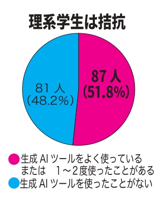 一方、理系学生は全体の51・8%(87人)が「使ったことがある」だったのに対し「使ったことがない」人も48・2%(81人)と拮抗(きっこう)した。