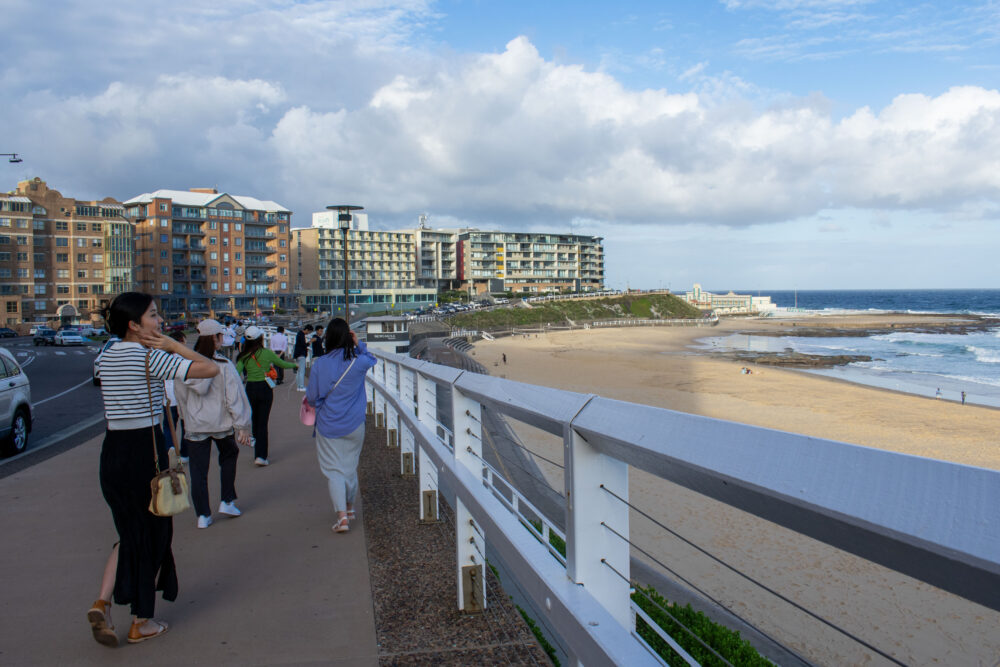 ニューカッスルの商店街にはレストランや雑貨店のほか、ビーチが近いためか水着を取りそろえている店、現地のコンビニエンスストアが立ち並ぶ。日本では見たことのないメニューや商品があり、とても新鮮に感じられた。