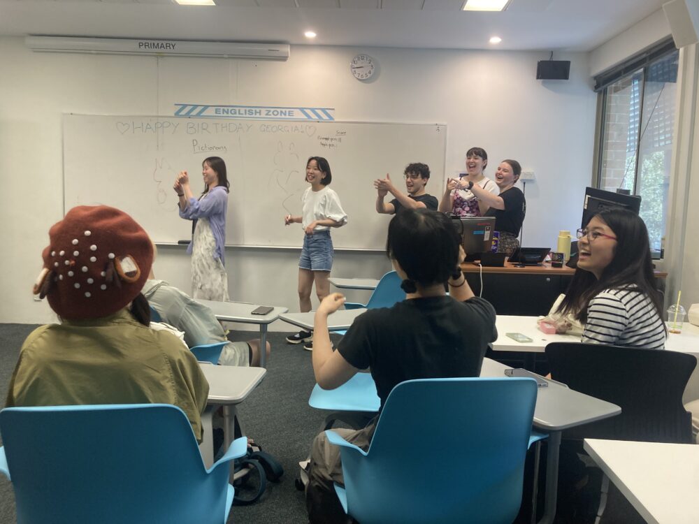 また、週に2回ほど授業の間の昼休み時間を利用して、スプリングスクールの参加者と現地の学生との文化交流の場が設けられた。現地の学生がさまざまなアクティビティを企画。オーストラリアのスラングを習い、意味を当てるクイズや、カードに書かれた英単語を隠して説明し合い、その単語を当てるゲームを楽しんだ。