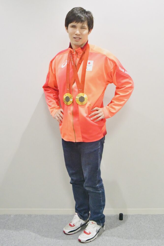 パリパラで獲得した二つの金メダルを首にかける木村さん