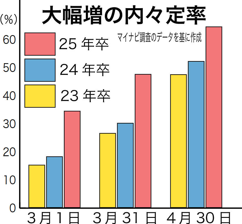 25年卒就活 採用早期化が急加速 4月末の内々定率は64%に