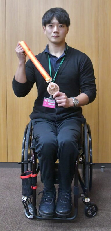 佐々木は本学在学中ラグビー部に所属していたが、2年生のときに大けがをし、下半身不随に。車いすラグビーへの転向を考えたが、四肢などより重度な障がい者でないと参加できず断念。4年生のころにリハビリで指導を受けた人から、車いす陸上の大会への出場を勧められたことが競技との出合いだった。