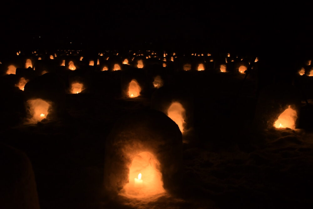「ミニかまくら」は毎年2月15・16日に行われる「横手の雪まつり」内のイベントのひとつで、約30㌢四方のバケツに雪を詰めて圧をかけ、逆さにしたものに穴を開けて作る。市民有志で構成するかまくら製作のボランティア団体「灯り点し隊」が中心となり、例年3000個以上のミニかまくらを製作している。