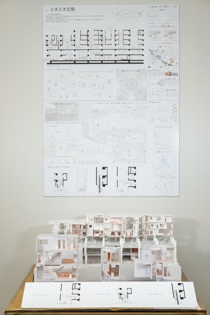 作品のテーマは「、ときどき玄関/Sometimes Genkan」=写真。建築学科3年前期の講義での課題である、東京の南青山での商業・住居の複合施設の設計課題として設計。宮田さんは複合施設において、商業という公的なものと住居という私的な場所をどうつなぐかを一番に考え、その場所として玄関を取り上げた。
