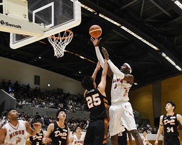 バスケットボールの関東大学選手権が4月20日から5月5日まで東京都世田谷区の駒沢体育館などで行われ、関東地区の97校がしのぎを削った。本学レッドシャークスは8位となり、2年連続のベスト8にとどまった。シェイク・ケイタ(スポーツ科3=福井・北陸高)がリバウンド王に輝いた。