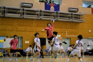 序盤から順調に点差を広げ19―12で前半を終えた。後半は連携ミスなどが目立ち、後半21分には30―27まで詰められ、本学はタイムアウトを取った。タイムアウト後は、それまでのムードを一掃。主将の井手悠登(商4=長崎日大高)のスカイプレーを含んだ連続得点などで突き放し、39―30で勝利した。