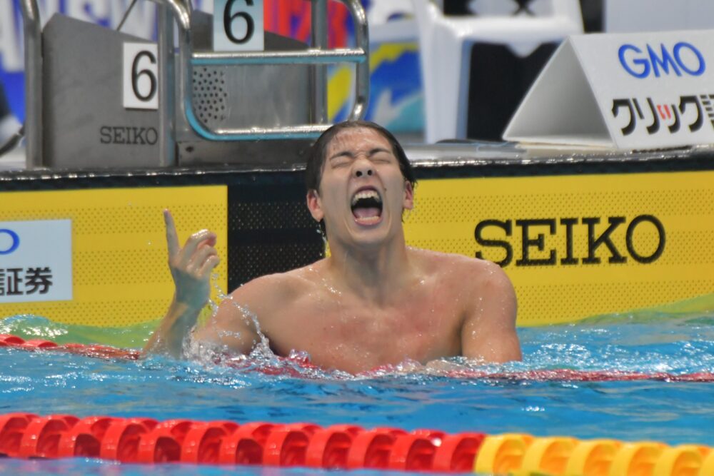 結果は、100㍍自由形で49秒05の自己ベストを記録し準優勝。200㍍自由形では1分47秒46と自己ベストにはわずか0秒01及ばなかったが、金メダルを勝ち取った。昨年はラスト50㍍で田中大寛(早大4)に逆転され、惜しくも準優勝に。その経験から、ことしは隣の泳ぎを見つつ体力を温存。ラストに備える作戦が勝利につながった。
