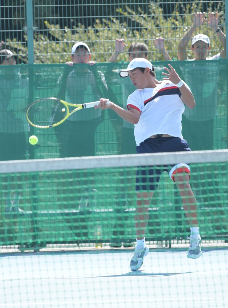 3日に行われた準決勝では関学大と対戦。ダブルスに出場した高悠亜(スポーツ科2=岡山・関西高)・小泉熙毅(通信教育部2=埼玉・浦和麗明高)ペア、斎藤成(文理3=神奈川・湘南工大付高)・丹下颯希(同2=愛媛・新田高)ペアが勝利し、ダブルス全3戦を終えた時点で2勝1敗とリード。5戦行われるシングルスでは、片山楓(スポーツ科4=福井・敦賀気比高)、小泉、石垣秀悟(経済3=長野・松商学園高)の3人が勝利し、本学が合計5勝で、決勝進出を決めた。