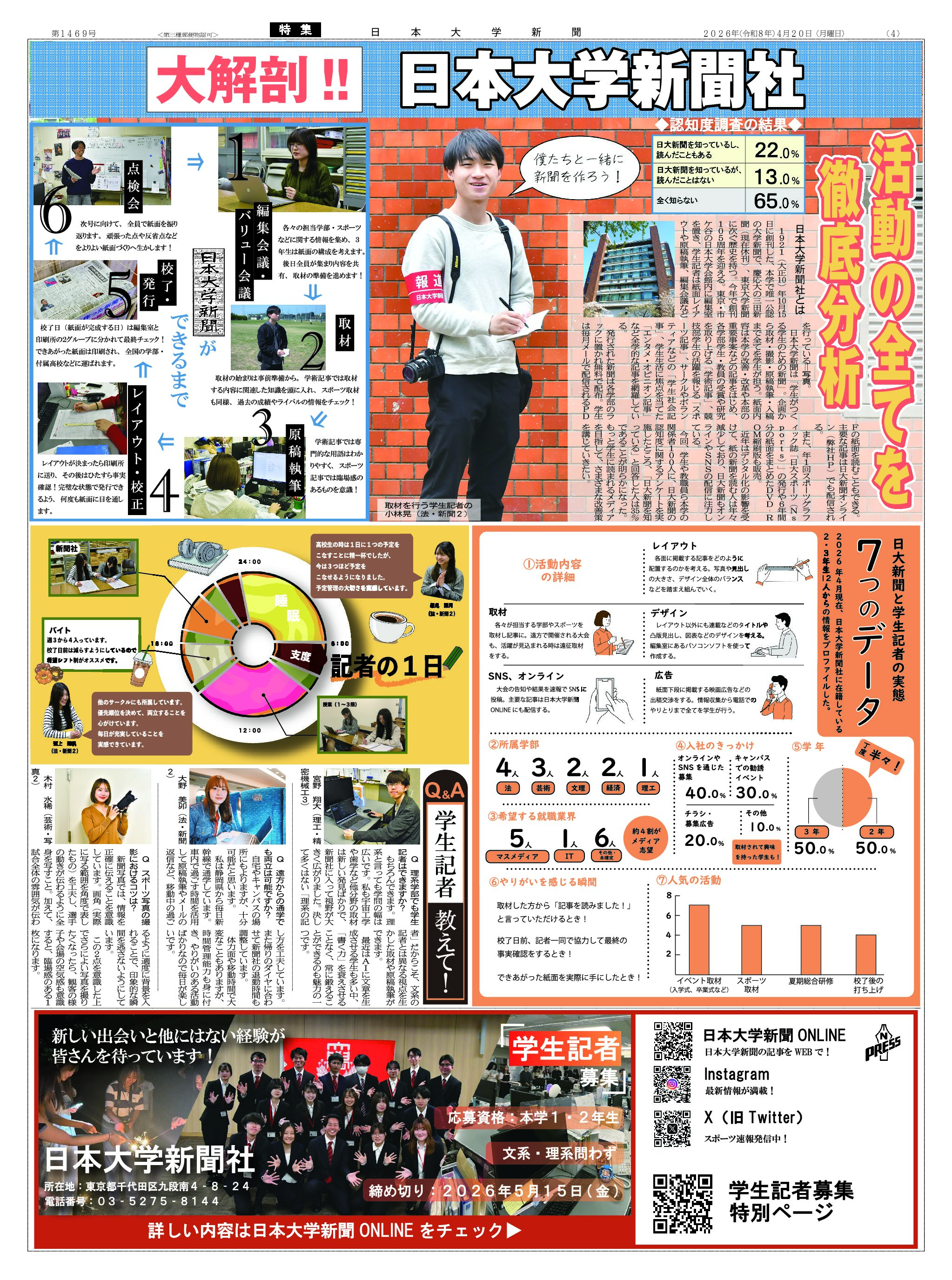 今年も国内にとどまらず世界の舞台で活躍できる期待の新鋭が入学した。本紙記者が注目する4競技部6選手にスポットを当てて紹介する。これからの「日大スポーツ」を背負う選手たちをぜひ応援してほしい。