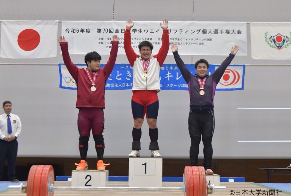 重量挙げ 全日本学生個人 61㌔級上坂、73㌔級永山、81㌔級佐藤、102㌔級西川、109㌔超級塚田 本学勢5階級でV