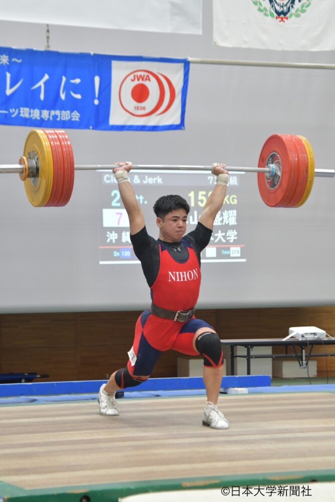 同73㌔級の永山はスナッチ2本目で125㌔を上げ1位。ジャークでは2本目に158㌔に成功し2位。トータル283㌔と2位の神谷亮輔(中大2)にわずか1㌔差で優勝した。