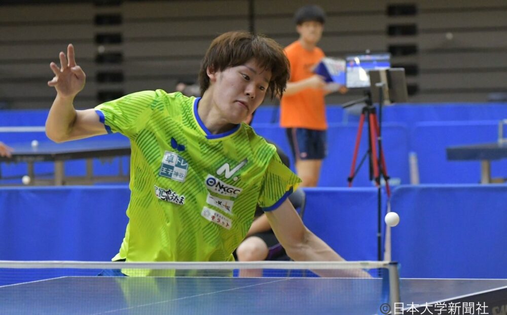 迎えた決勝の相手は浜田一輝(早大3)。1セット目は7―11で敗れるも、その後2セットを連取。しかし、浜田に4、5セット目を奪われ王手をかけられた。