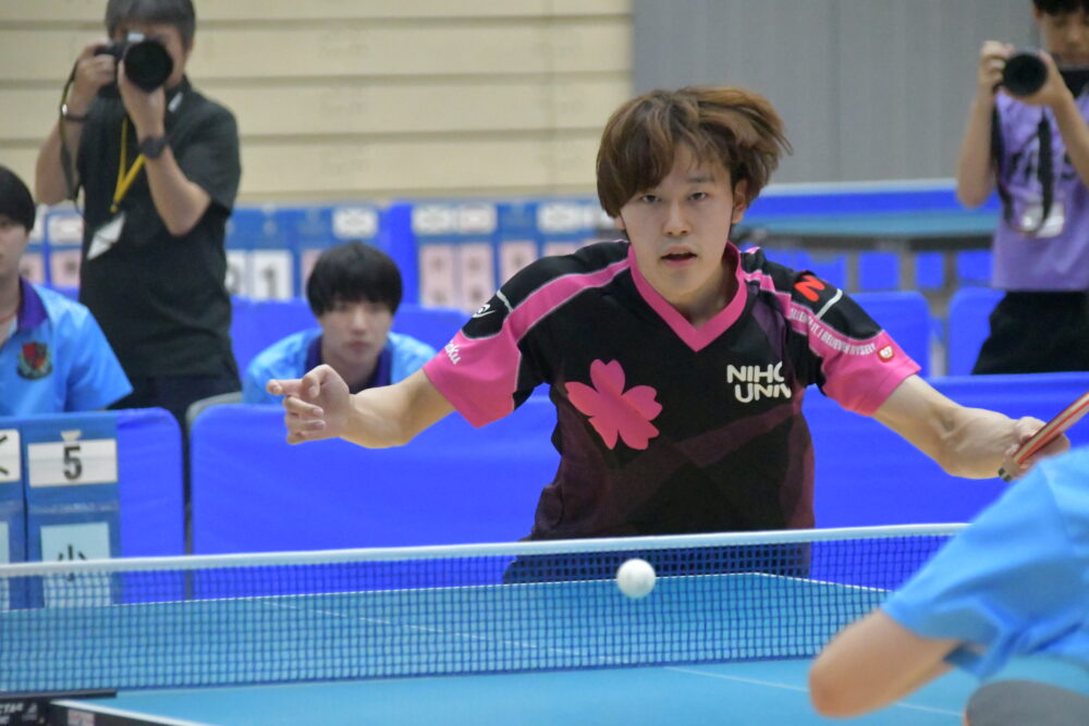 1番手は伊藤礼博(経済3=東京・安田学園高)。1セット目を落とすも、2セット目は11―8で奪取。互いに譲らずにフルセットまで持ち込むも、最終セットは8―11で惜しくも敗れた。