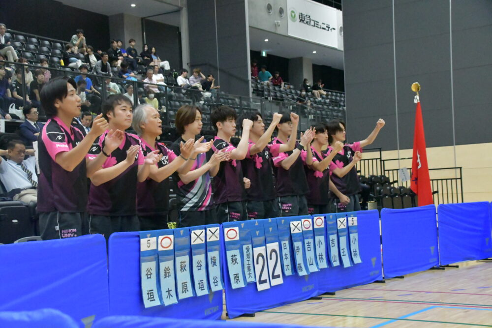 男子は予選リーグを全勝し予選1位で決勝トーナメントに。その後、準々決勝まで順当に勝ち上がり筑波大を3―0で下し準決勝に進出した。
