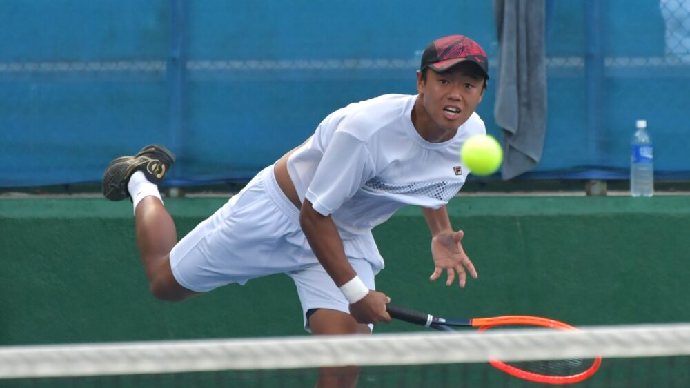 同シングルス決勝では高と丹下が同門対決となった。1セット目、ゲームカウント3―3となった6ゲーム目では、デュースで互いにアドバンテージを取り合い拮抗。それでも高が粘り切り、ゲームカウント6―4で同セットを奪取した。