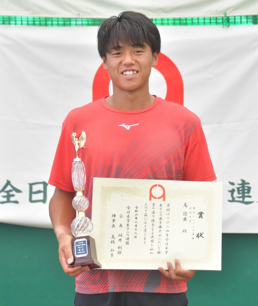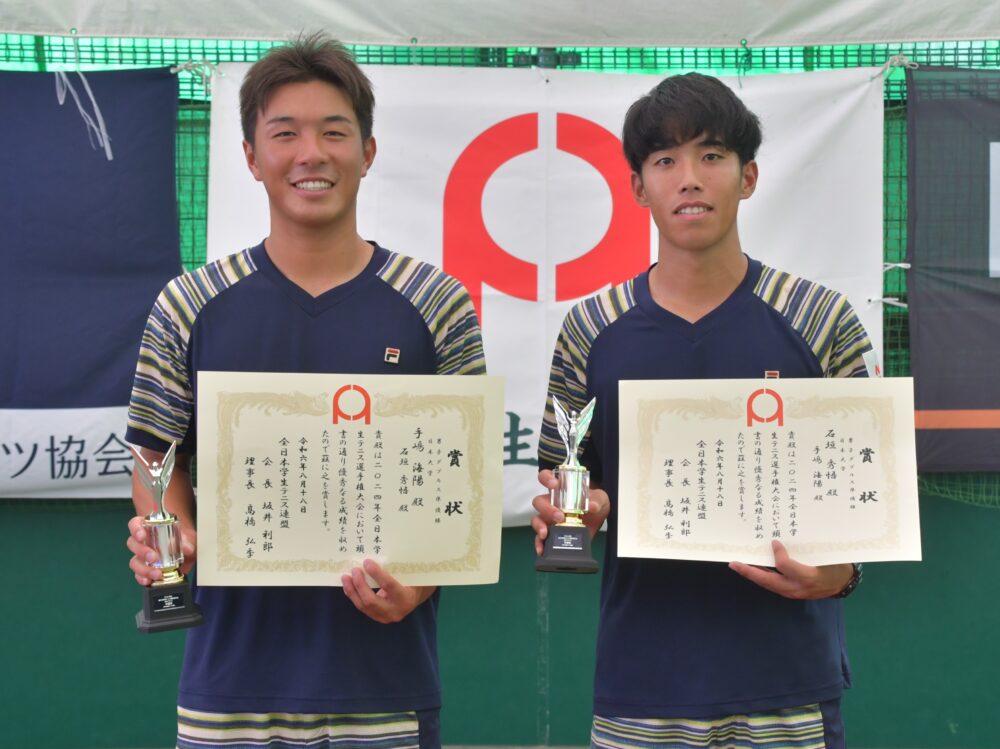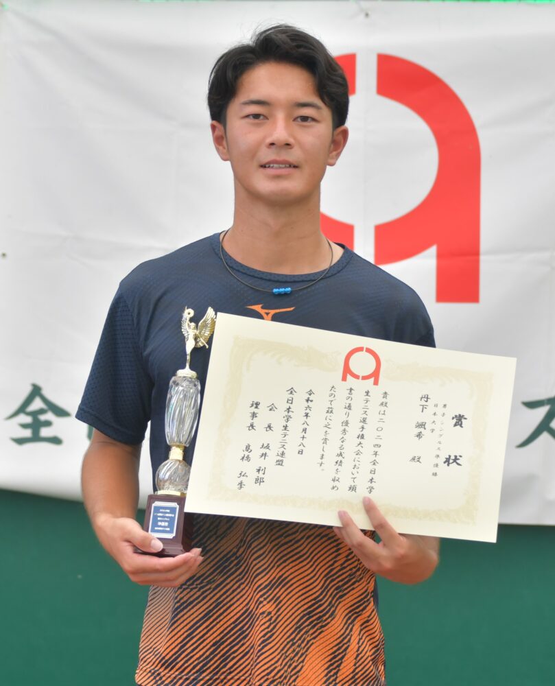 テニスの全日本学生選手権が8月12日から18日まで三重県の四日市テニスセンターで行われ、男子シングルスで高悠亜(スポーツ科3=岡山・関西高)が初優勝を果たした。また、同シングルスの丹下颯希(さき)(文理3=愛媛・新田高)、同ダブルスで石垣秀悟(経済4=長野・松商学園高)・手嶋海陽(スポーツ科4=鹿児島・神村学園高)ペアが準優勝をした。その他、同シングルスで石垣、同ダブルスで高・小泉煕毅(通信教育部3=埼玉・浦和麗明高)ペアがベスト8に入った。