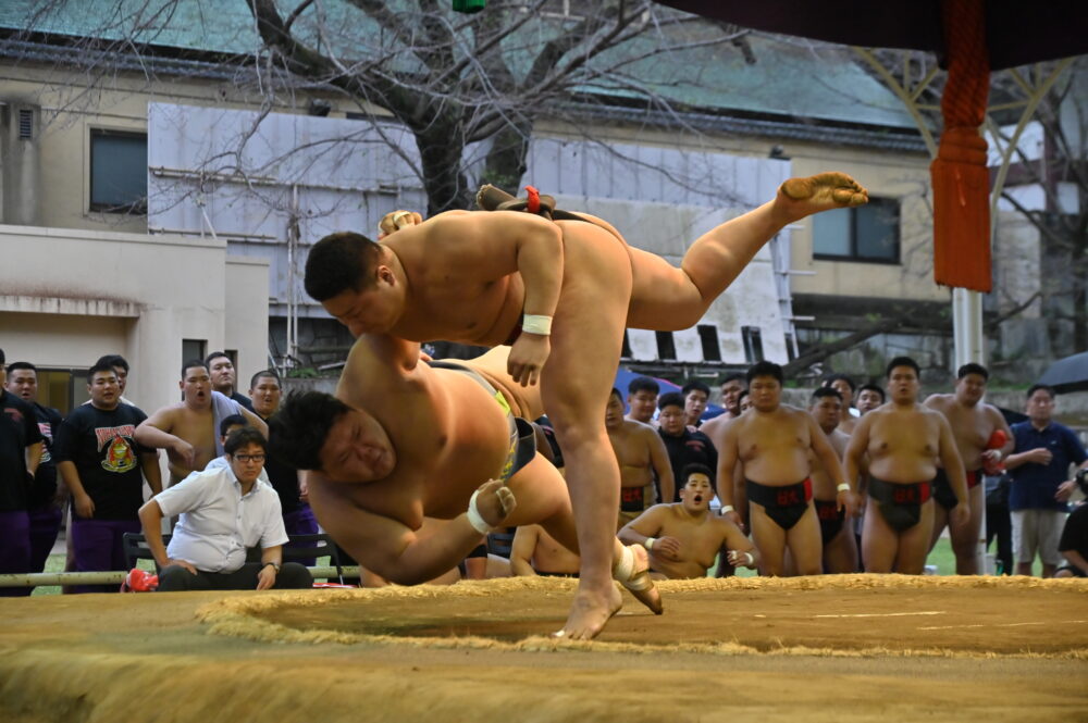 4―4で迎えた大将戦。勝てば優勝の場面で西加陽斗(経済3=鹿児島商高)が杉本弘樹(2)と対戦。杉本の激しい押しにより土俵際まで追い込まれ、そのまま土俵を割った。