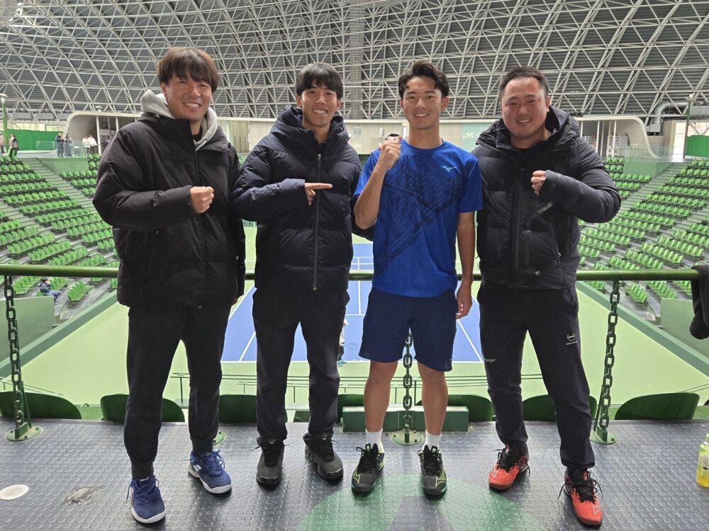 テニスの全日本学生室内選手権が昨年12月9日から15日まで兵庫県三木市のブルボンビーンズドームで行われ、本学は男子シングルスで丹下颯希(文理3=愛媛・新田高)が初優勝を果たした。同ダブルスでは手嶋海陽(スポーツ科4=鹿児島・神村学園高)・高畑里樹(文理2=兵庫・相生学院高)ペアが3位に入った。