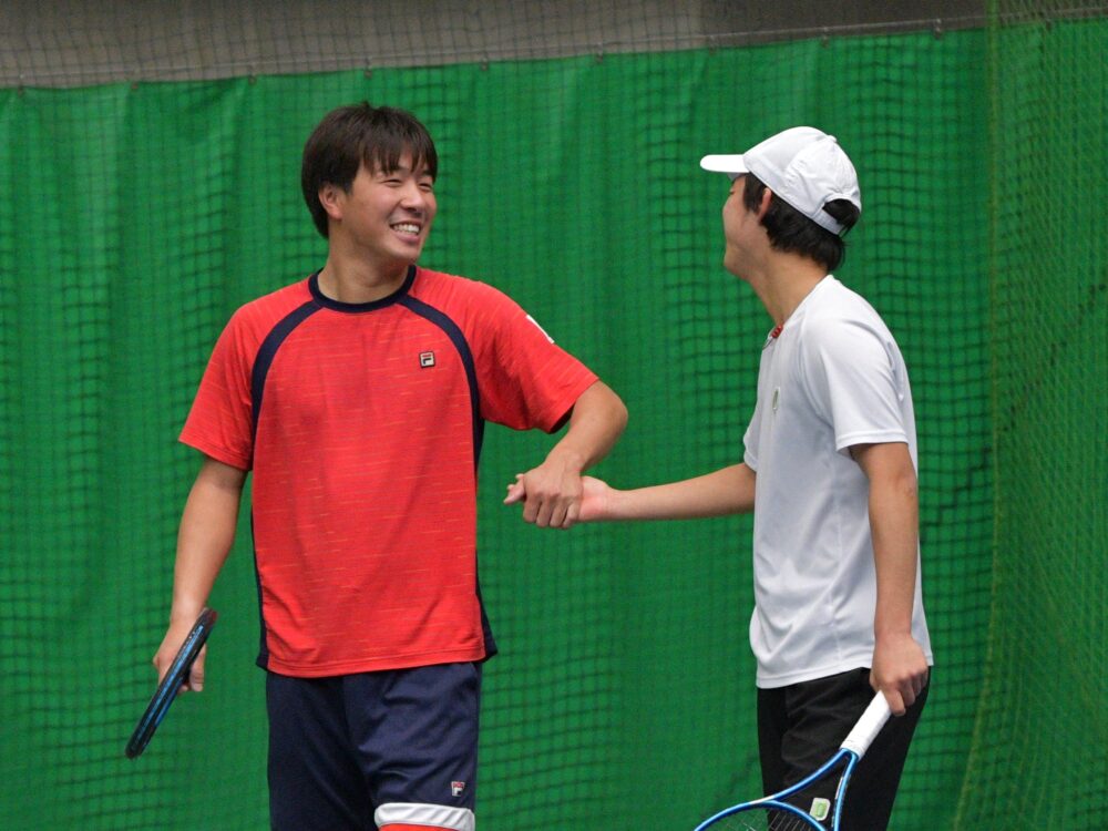 14日に行われた、同ダブルス準決勝で手嶋・高畑ペアは法大の寺島拓斗(1)・永井優輝(1)ペアと対戦。1セット目の1ゲーム目を先取するが、3ゲームを連続で奪われた。その後、差を縮めることができず、ゲームカウント2―6と1セット目を落とす。2セット目も永井のレシーブに押されゲームカウント2―6で敗退。結果3位入賞となった。