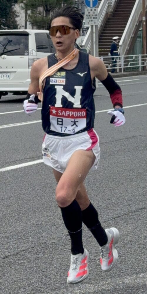 白と黄色の繰り上げ襷を掛けて走る9区の小路