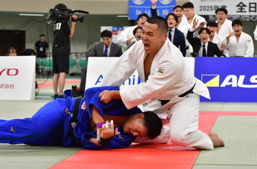 準決勝の相手は準々決勝で27回の優勝を誇る強豪東海大を破った桐蔭横浜大。勢いのある相手に対しても先鋒の浜田が肩固めで一本勝ちを取ると、一度も主導権を渡さず5―0の全勝で9年ぶりの決勝へ。
