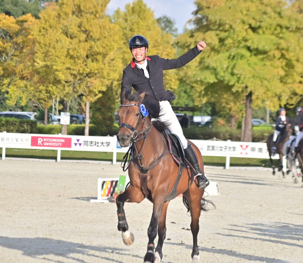 馬術の全日本学生三大大会が10月30日から11月3日にかけて兵庫県の三木ホースランドパークで行われ、本学は団体で馬場馬術と総合馬術の2種目で優勝、障害馬術は3位に入り、団体総合で堂々の15連覇を達成した。個人では砂川成弘(スポーツ科3=奈良・山辺高)が馬場馬術で初優勝した。