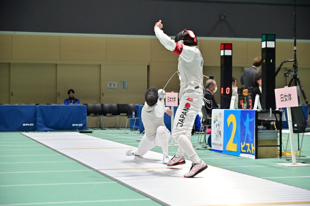フェンシングの全日本選手権の団体戦が昨年11月21日から23日まで青森県むつ市のむつマエダアリーナで行われ、本学は女子フルーレ団体で4連覇に輝いた。その結果、2025年度の同団体は主要大会タイトル5冠(関東学生リーグ・王座・関東学生選手権・インカレ・全日本団体)達成を果たした。フェンシングのタイトル5冠は本学として09年の同サーブル団体以来16年ぶりで、同フルーレ団体では初の快挙。